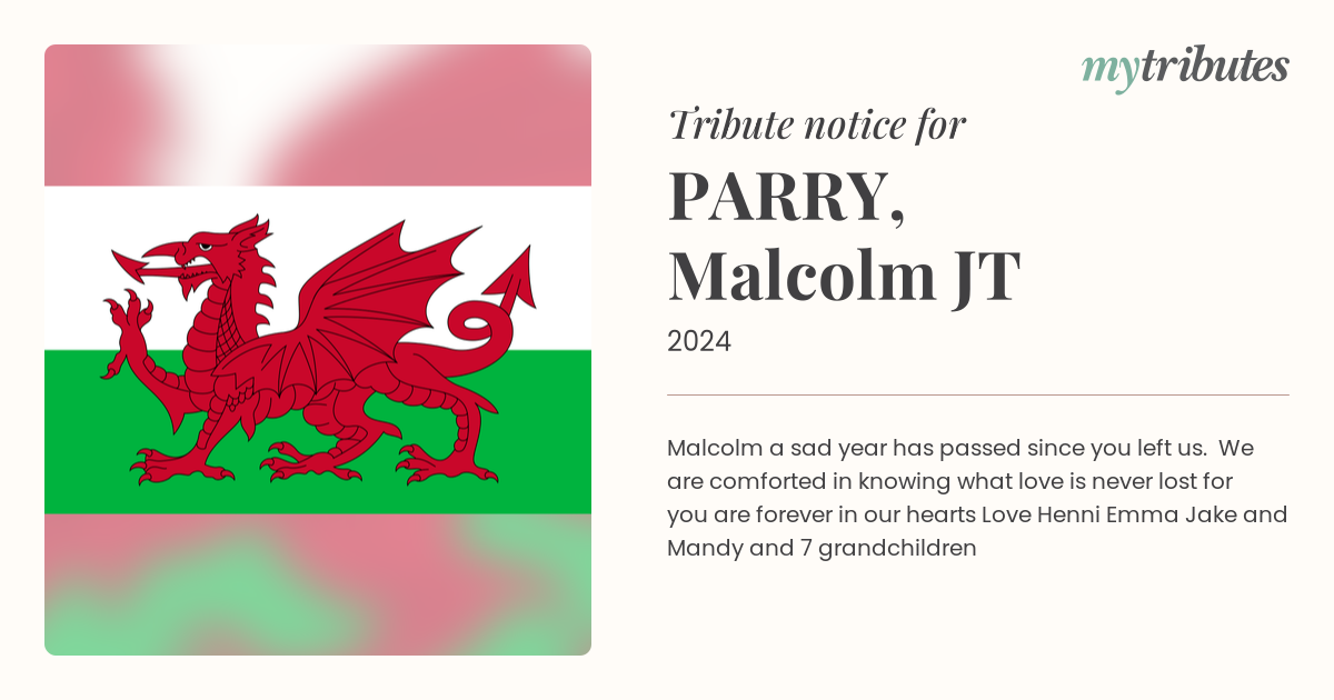 23°CMalcolm a sad year has passed since you left us. We are comforted in knowing what love is never lost for you are forever in our hearts Love Henni Emma Jake and Mandy and 7 grandchildren
