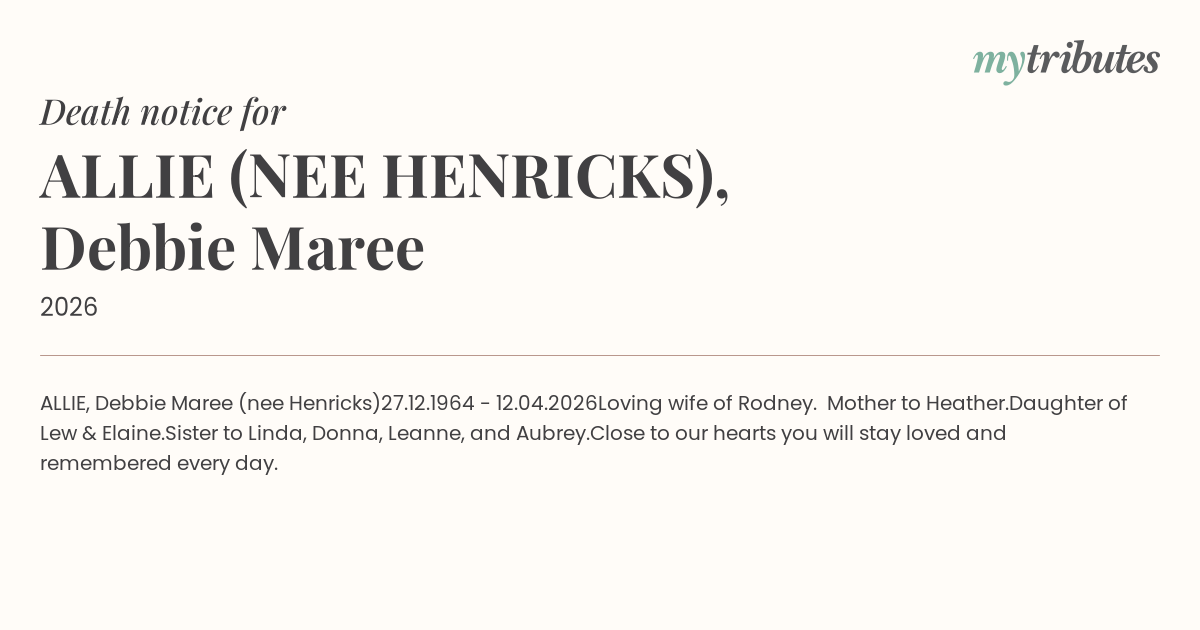 Sister to Linda, Donna, Leanne, and Aubrey.