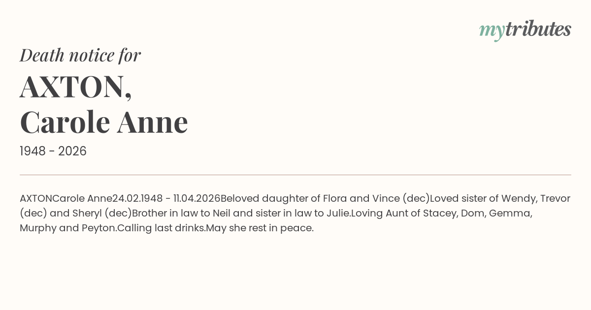 Loving Aunt of Stacey, Dom, Gemma, Murphy and Peyton.