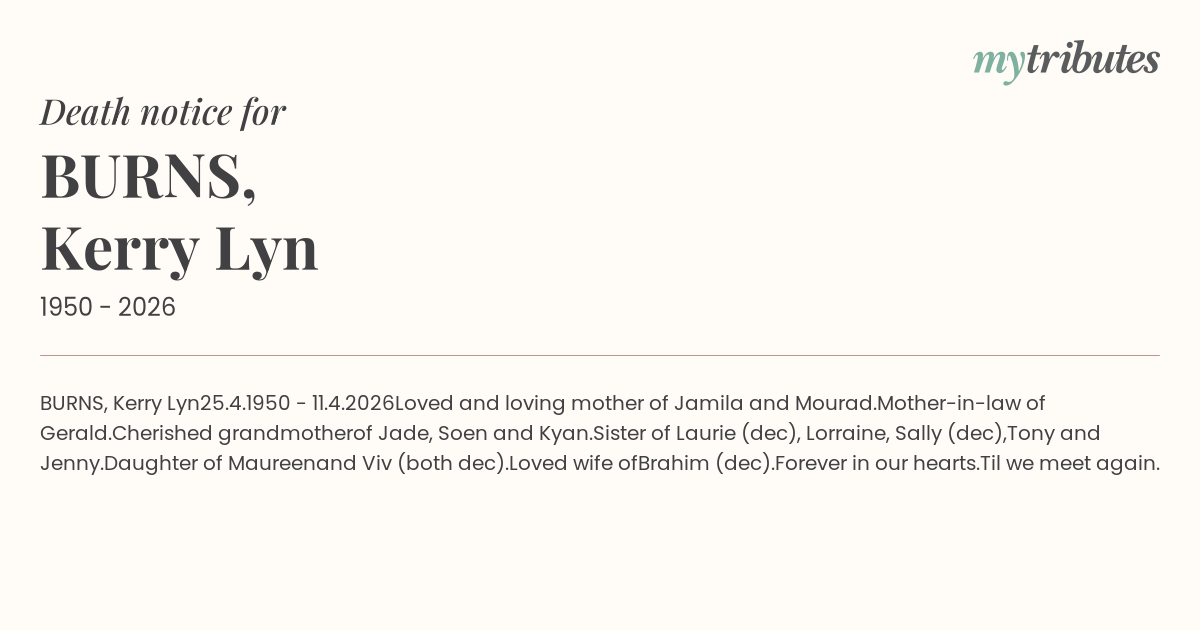 Sister of Laurie (dec), Lorraine, Sally (dec),