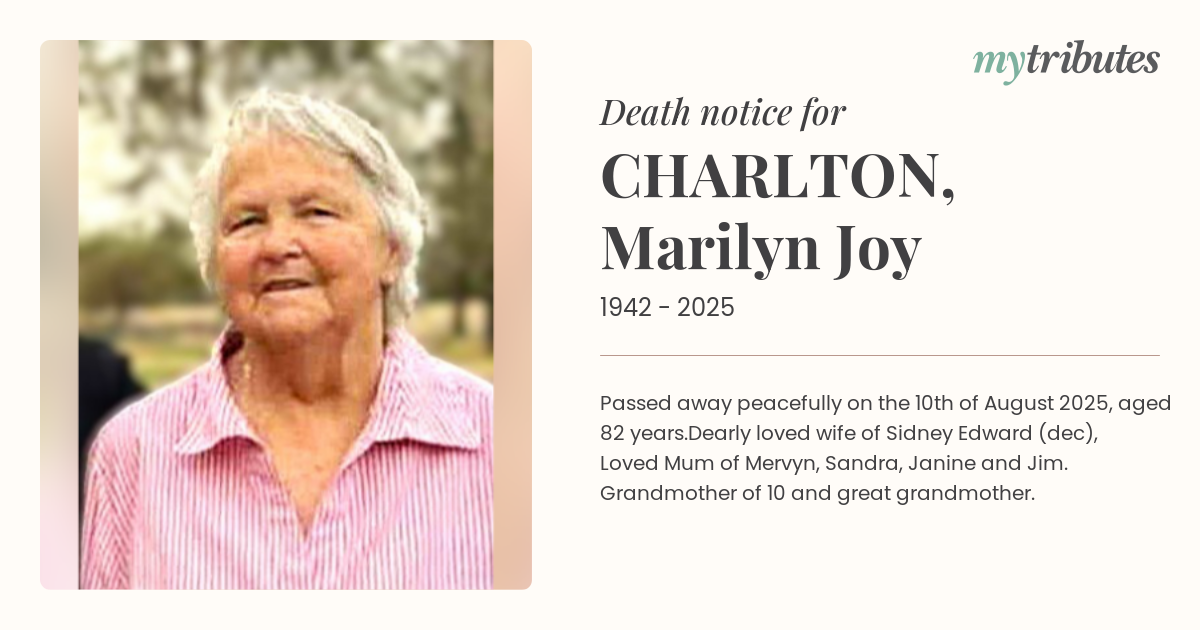 23°CPassed away peacefully on the 10th of August 2025, aged 82 years.
