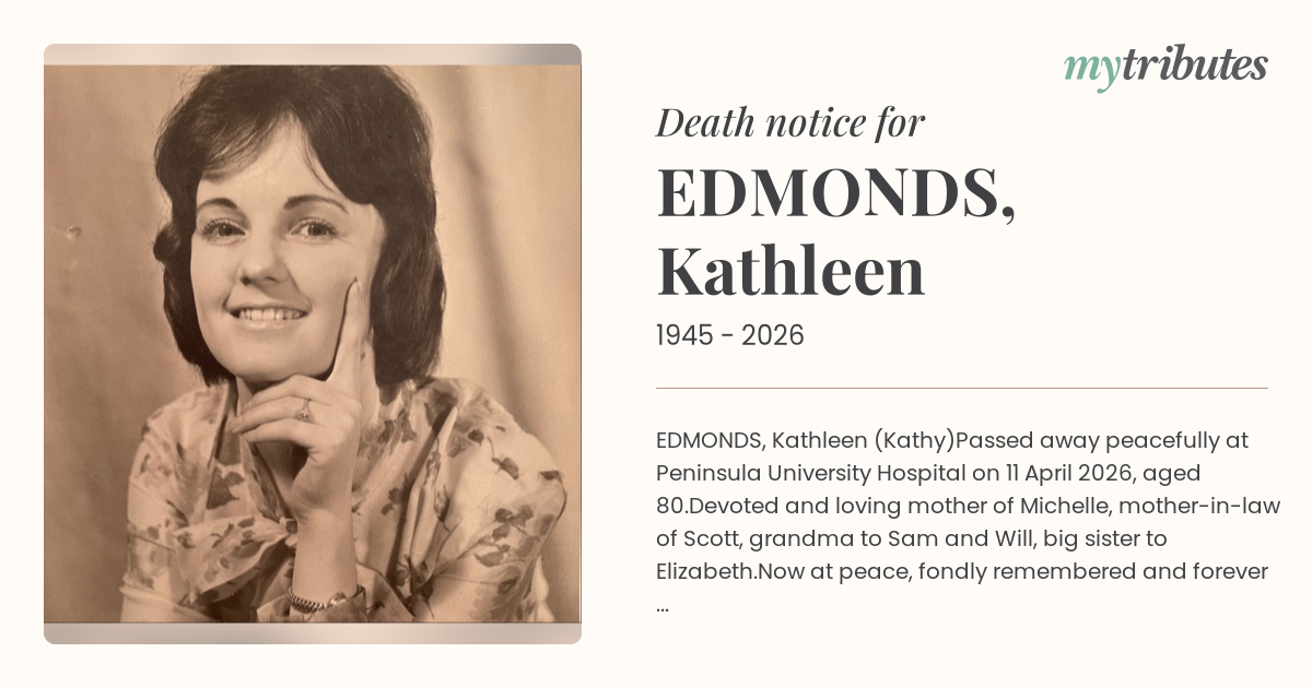 Passed away peacefully at Peninsula University Hospital on 11 April 2026, aged 80.