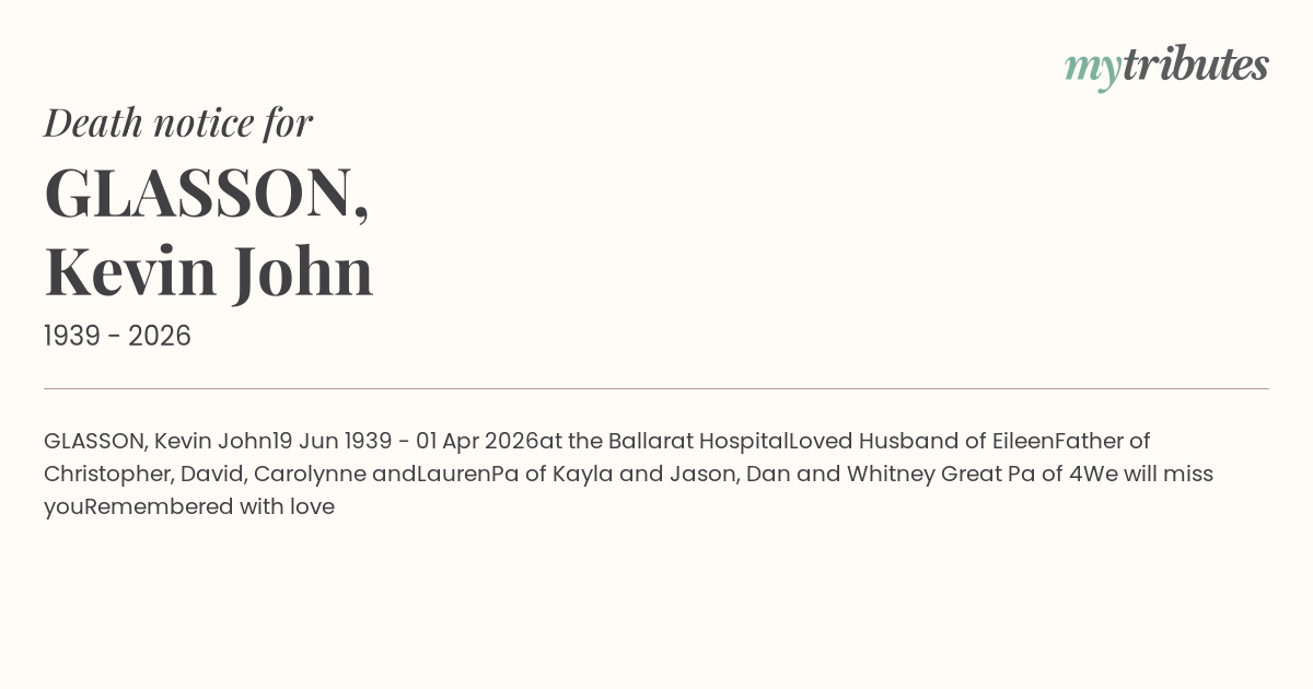 23°CGLASSON, Kevin John