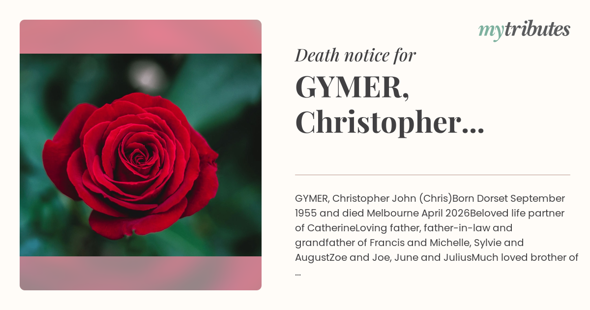 Born Dorset September 1955 and died Melbourne April 2026