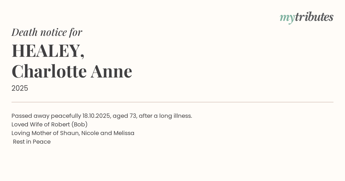 23°CPassed away peacefully 18.10.2025, aged 73, after a long illness.