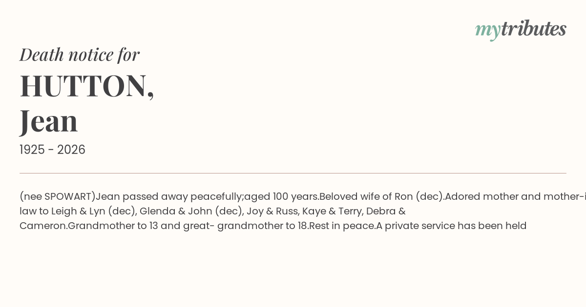 Jean passed away peacefully;