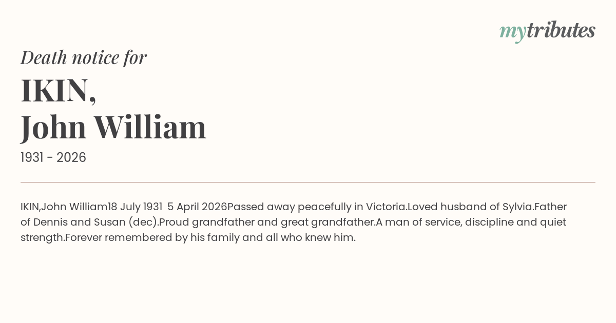 Passed away peacefully in Victoria.