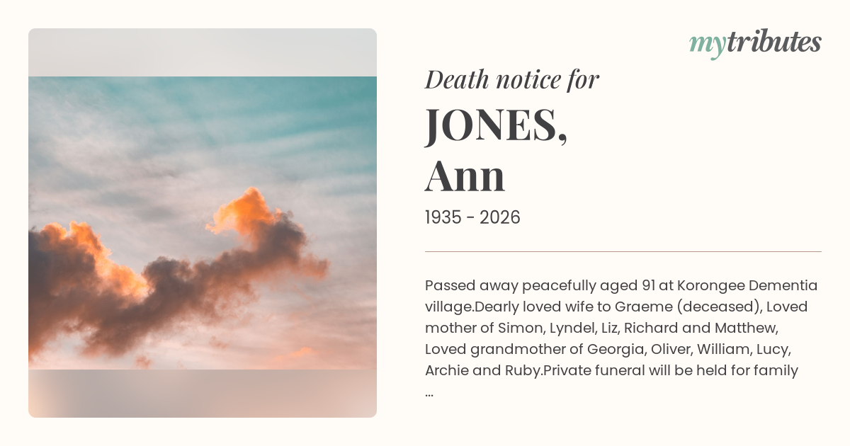 23°CPassed away peacefully aged 91 at Korongee Dementia village.