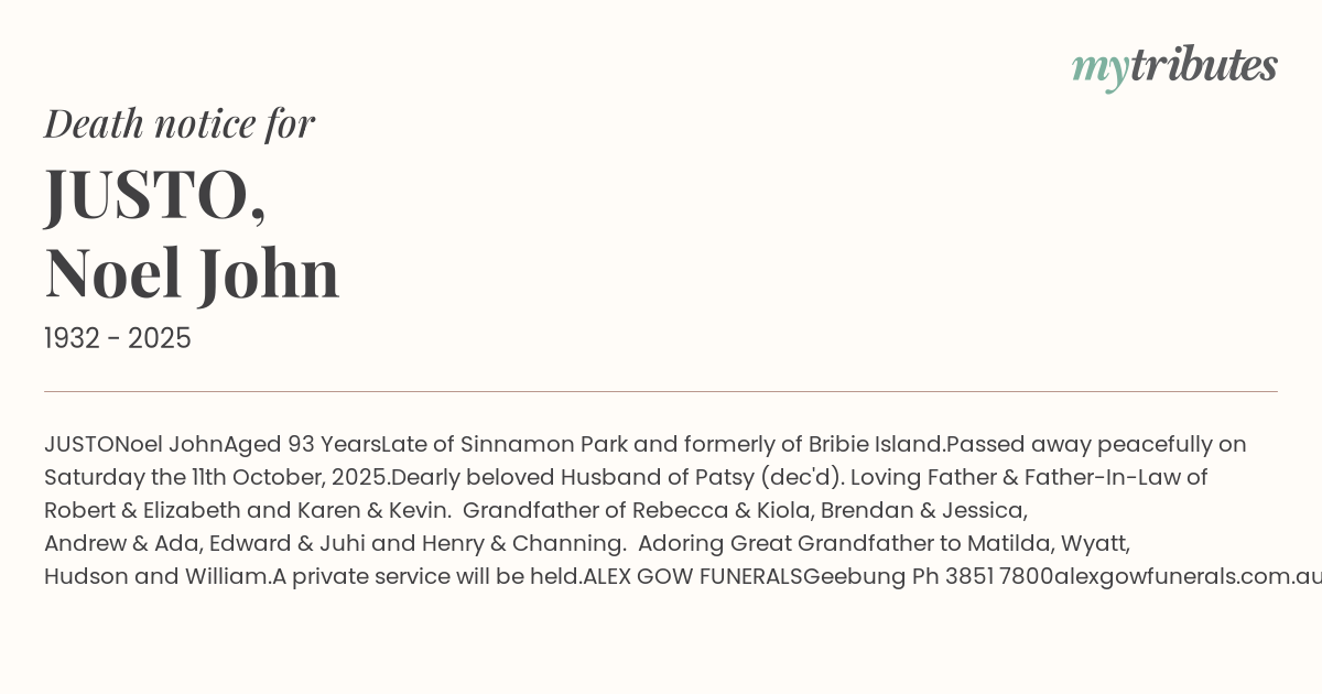Dearly beloved Husband of Patsy (dec'd). Loving Father & Father-In-Law of Robert & Elizabeth and Karen & Kevin. Grandfather of Rebecca & Kiola, Brendan & Jessica, Andrew & Ada, Edward & Juhi and Henry & Channing. Adoring Great Grandfather to Matilda, Wyatt, Hudson and William.