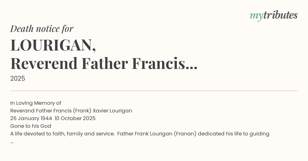 Reverand Father Francis (Frank) Xavier Lourigan