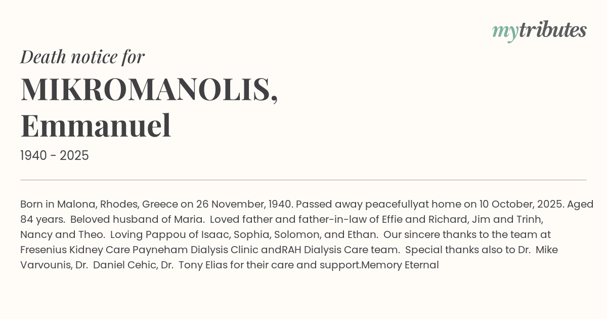 Born in Malona, Rhodes, Greece