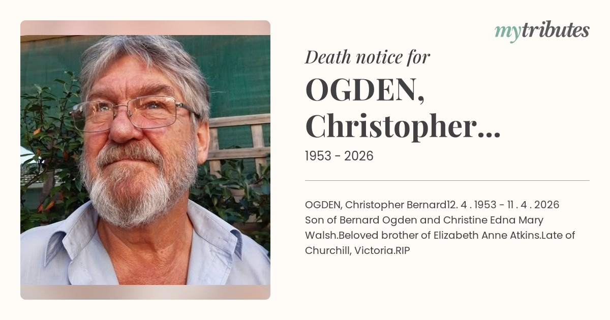 Son of Bernard Ogden and Christine Edna Mary Walsh.