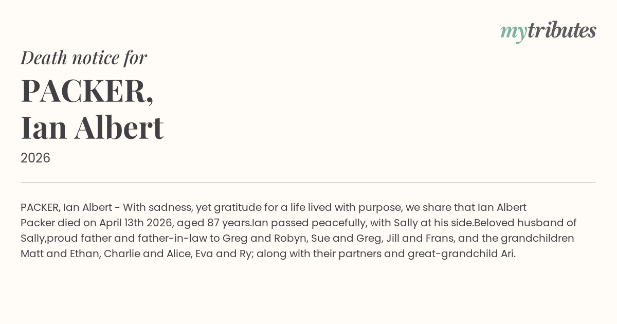 With sadness, yet gratitude for a life lived with purpose, we share that Ian Albert Packer