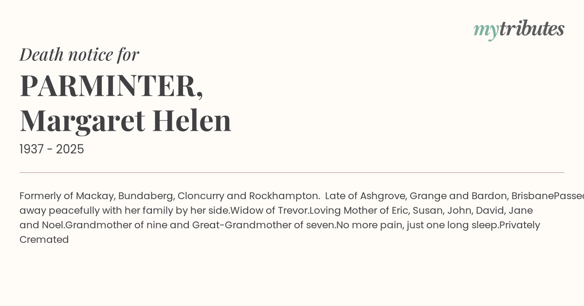 23°CFormerly of Mackay, Bundaberg, Cloncurry and Rockhampton. Late of Ashgrove, Grange and Bardon, Brisbane