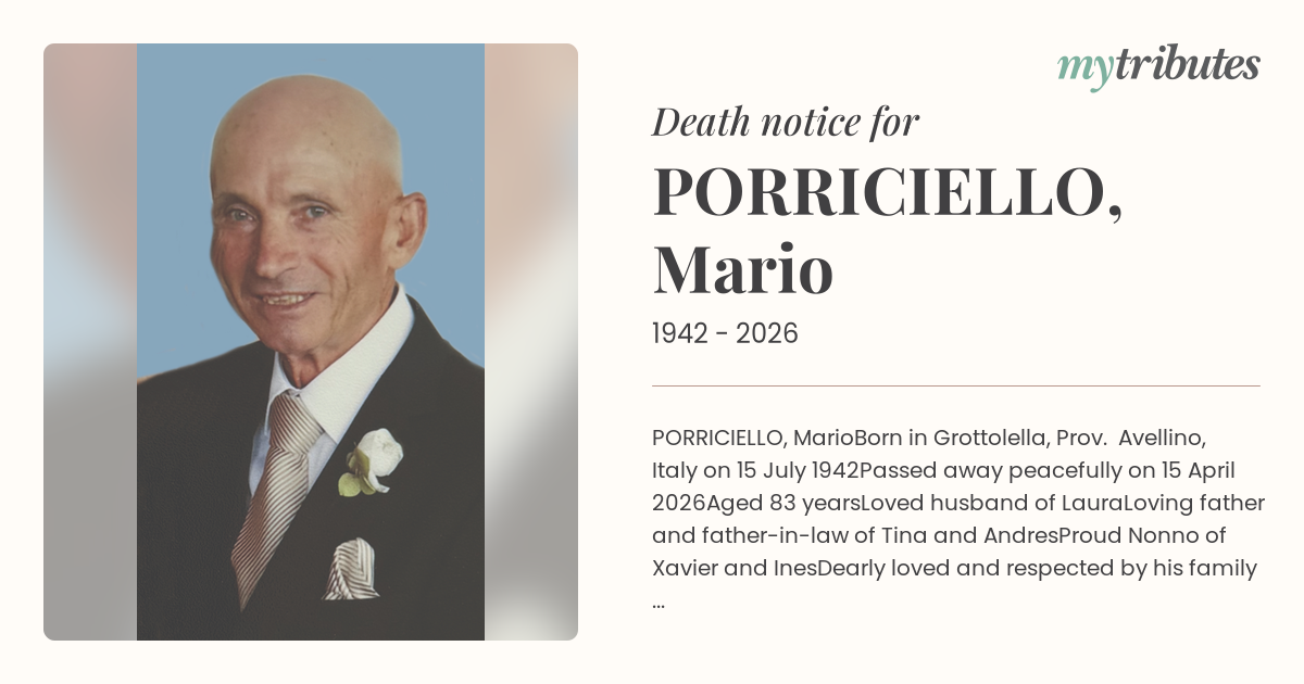 Dearly loved and respected by his family and friends in Australia, Italy and Switzerland