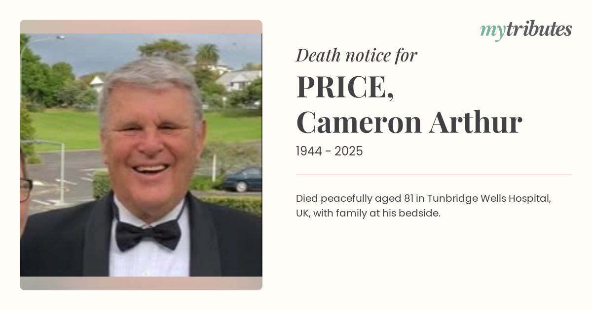 Died peacefully aged 81 in Tunbridge Wells Hospital, UK, with family at his bedside.