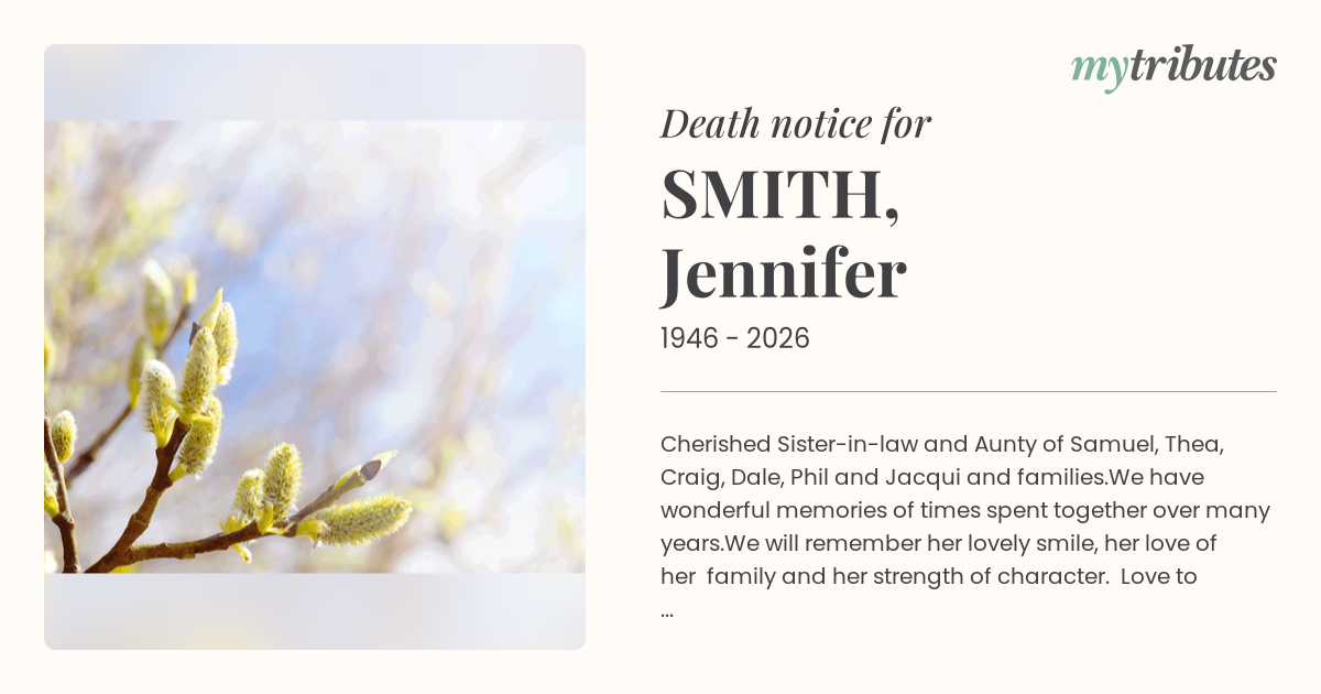 23°CCherished Sister-in-law and Aunty of Samuel, Thea, Craig, Dale, Phil and Jacqui and families.