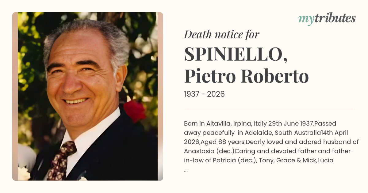 Treasured brother-in-law of Maria Grazia (Sr. Teodora), Domenico & Angela (both dec.), Giuseppe & Felicina, Attilio (dec.) & Elvira,