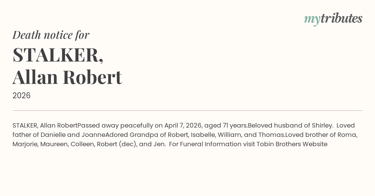 For Funeral Information visit Tobin Brothers Website