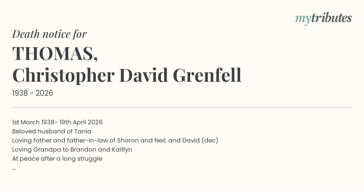 Loving father and father-in-law of Sharon and Neil; and David (dec)