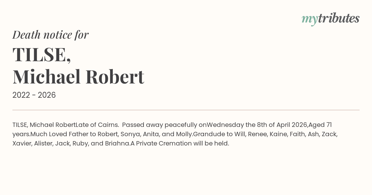 Much Loved Father to Robert, Sonya, Anita, and Molly.
