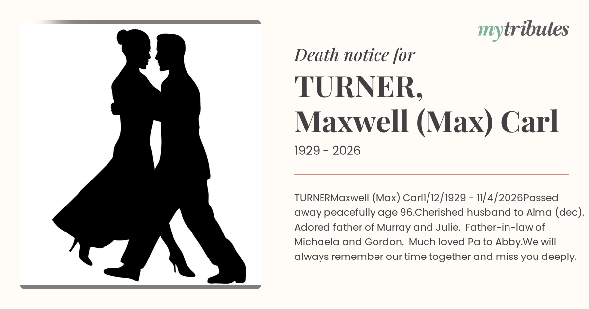 Cherished husband to Alma (dec). Adored father of Murray and Julie. Father-in-law of Michaela and Gordon. Much loved Pa to Abby.
