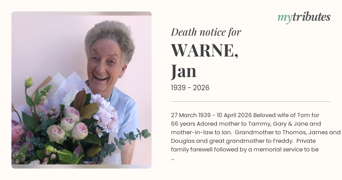 Adored mother to Tammy, Gary & Jane and mother-in-law to Ian.