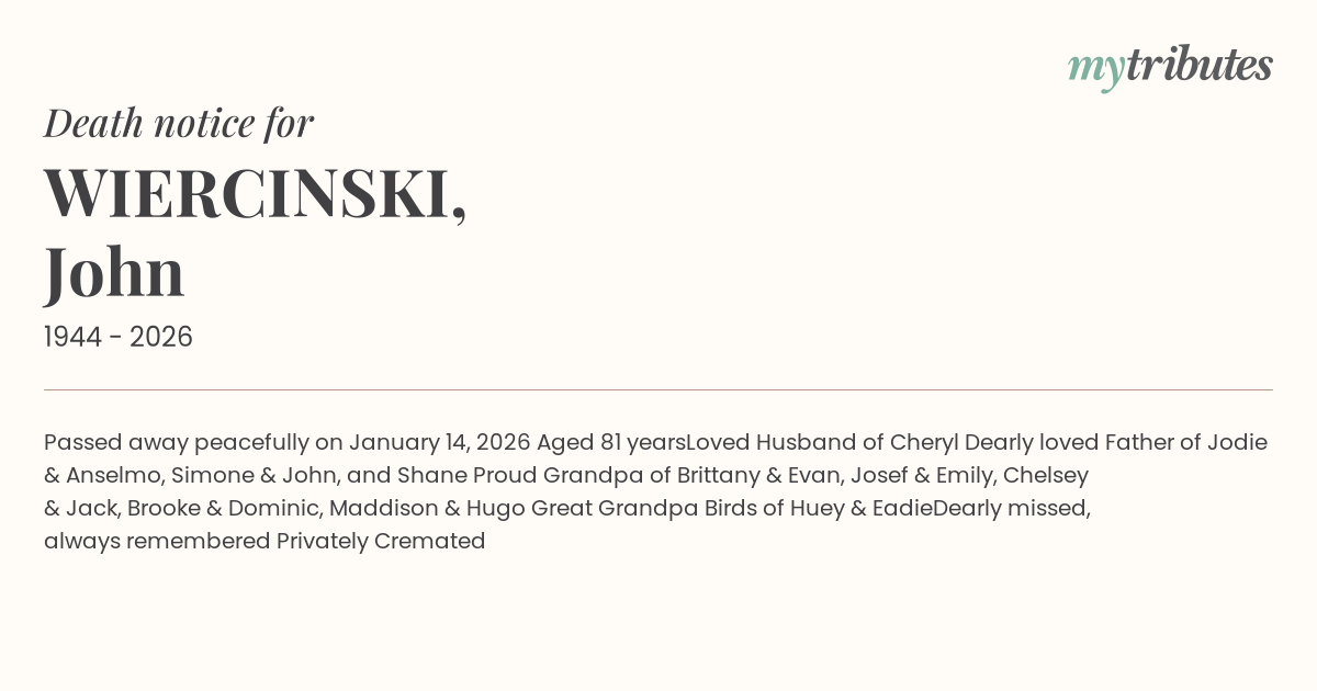 23°CPassed away peacefully on January 14, 2026