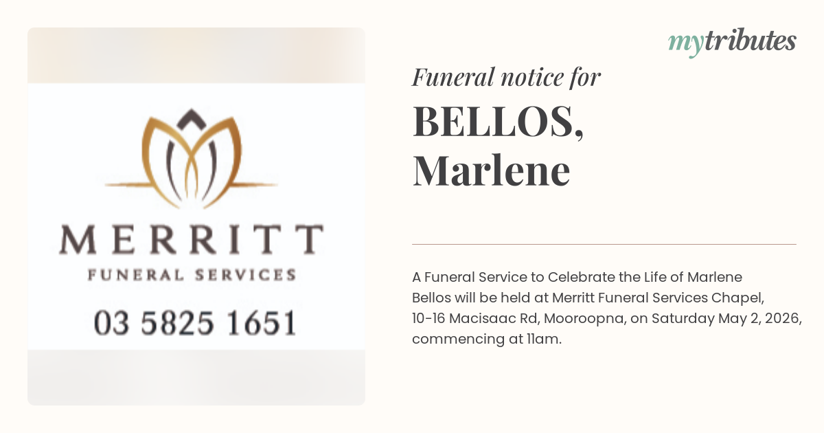 23°CA Funeral Service to Celebrate the Life of Marlene Bellos