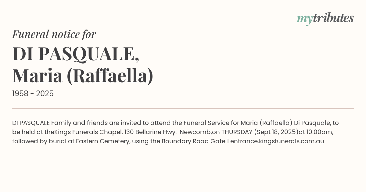 at 10.00am, followed by burial at Eastern Cemetery, using the Boundary Road Gate 1 entrance.