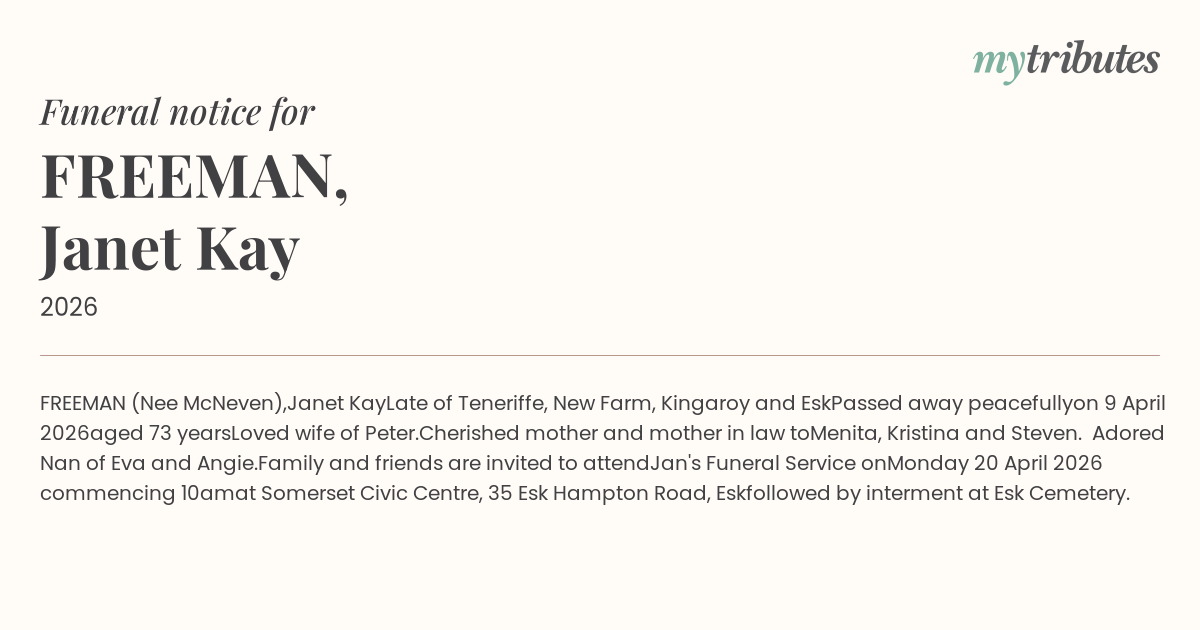 23°CFREEMAN (Nee McNeven),