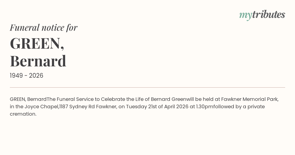will be held at Fawkner Memorial Park, in the Joyce Chapel,
