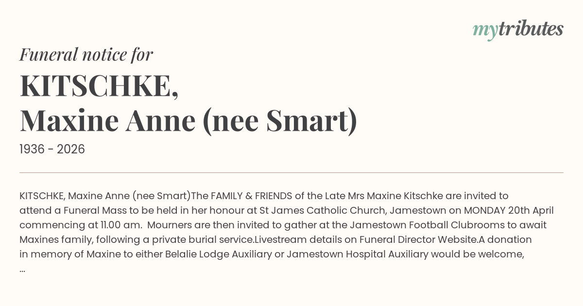 23°CKITSCHKE, Maxine Anne (nee Smart)