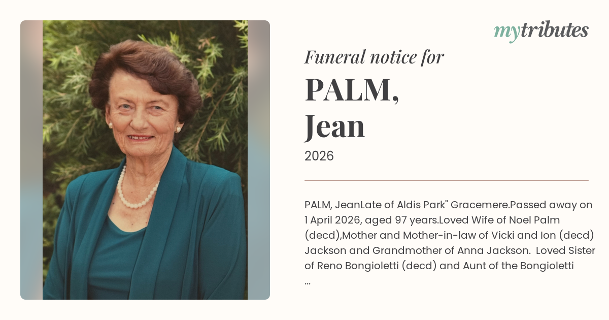 Passed away on 1 April 2026, aged 97 years.